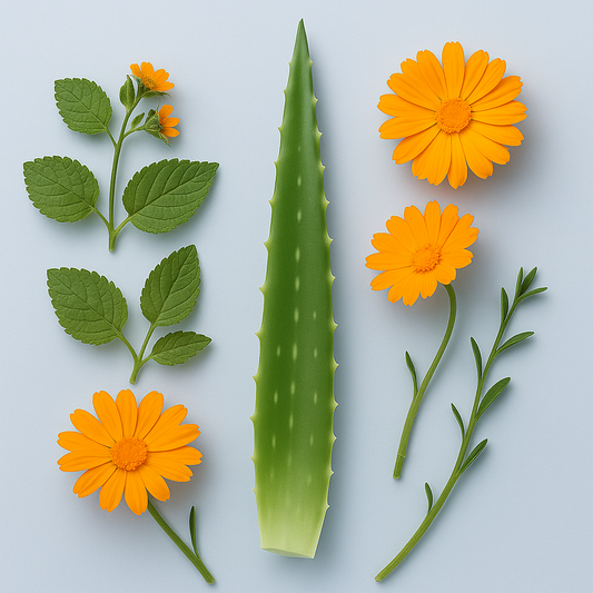 Aloe Leaf Juice: A naturally soothing and hydrating botanical that calms irritation, replenishes moisture, and promotes overall skin health. Ideal for sensitive or dry skin types.