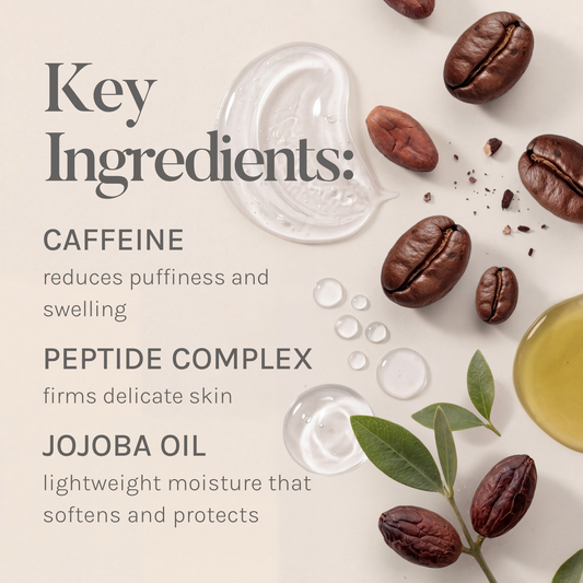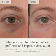 Caffeine: A powerhouse for tired eyes, caffeine helps reduce puffiness and under-eye bags by improving microcirculation. Its energizing properties revive dull, fatigued skin, while its antioxidant benefits help defend against environmental stressors, leaving the eye area looking brighter and more awake.
